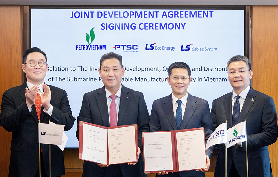 LS에코에너지는 12일 서울 소공동 롯데호텔에서 베트남 국영 에너지기업 페트로베트남 (PetroVietnam) 그룹과 해저케이블 조인트벤처(JV) 설립을 위한 공동개발협약(JDA, Joint Development Agreement)을 체결했다고 밝혔다.