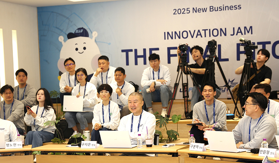 9월 26일, 안양 LS타워에서 개최된 LS Future Day에서 구자은 LS그룹 회장(하단 가운데)이 신사업 아이디어 분야에 멘토로서 참여해 발표를 듣고 있다