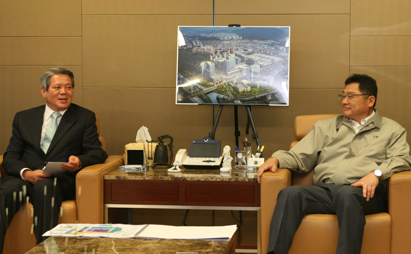 구자균 LS산전 부회장은 8월 8일 오전 안양 호계동 소재 LS타워에서 최대호 안양시장을 초청, 환담을 가졌다.
