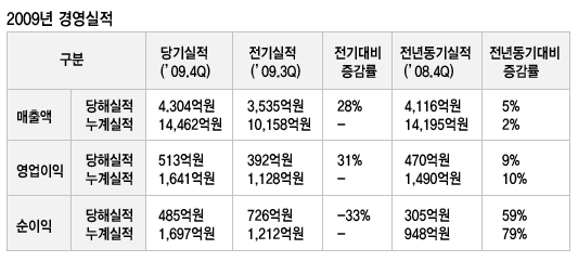 ■ 4분기 매출 4,304억원, 영업이익 513억원, 순이익 485억원